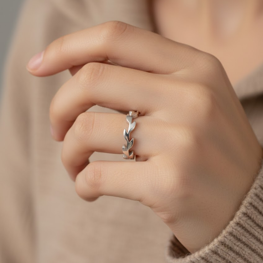 Inspired by nature’s quiet elegance, the EVERLEAF Ring features a continuous leaf motif that wraps gracefully around the band. Each leaf is delicately sculpted, creating a design that feels organic, refined, and effortlessly timeless.
