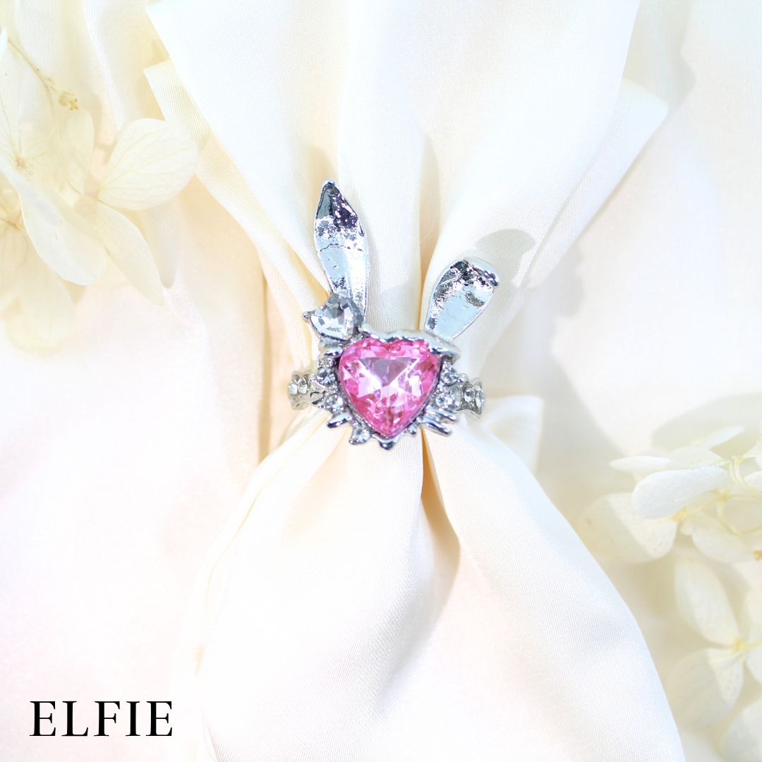 Rabbit Heart Pendant Adjustable 18K Silver Plated Ring