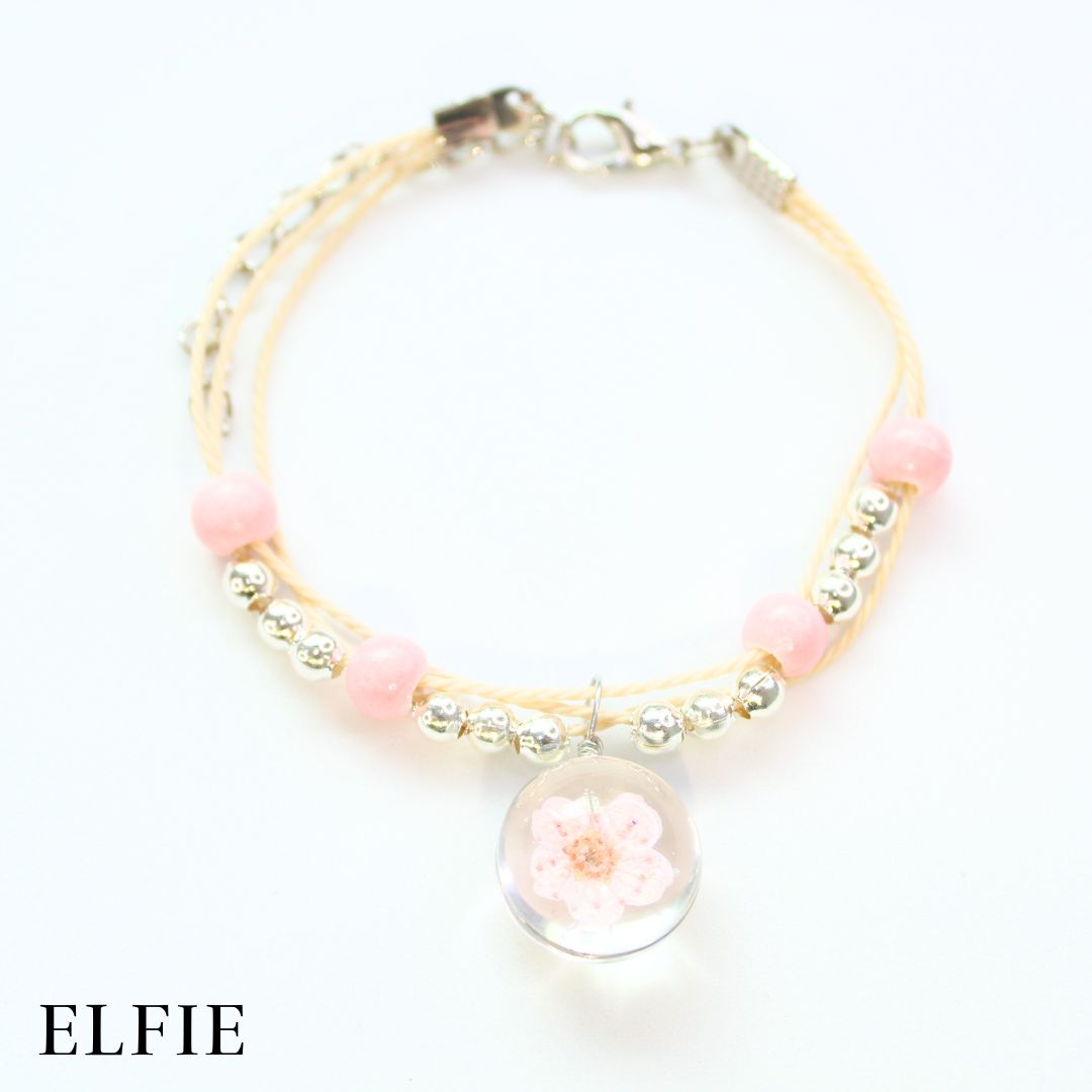 Soft Pink Dried Flower Ceramic Bracelet